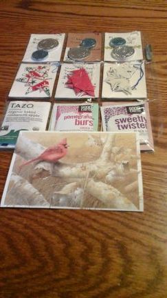 Marie, I finally got to the PO today and opened your wonderful pocket letter. I love it! Here are pics for everyone to see!      She had her cards with Merry Christmas in different languages and they can be used as tags, also the stars are gorgeous and the teas and chocolate coins. Thanks so much Marie!