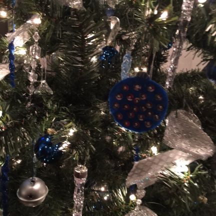 Ornaments on my Tree. I don't think she knew that I do a Blue/Silver/White tree but by her ornaments you would think she did.