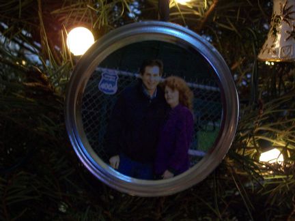 Is any one out there like me? Every year I make one special ornament that represents something that happen in that year of our life. It could be a vacation, birth of our child or an anniversary. This year for us is our 25th (silver) wedding anniversary. I made a special ornament using a silver canning jar lid and a color copy picture of the place we were on our anniversary. ![]()  |