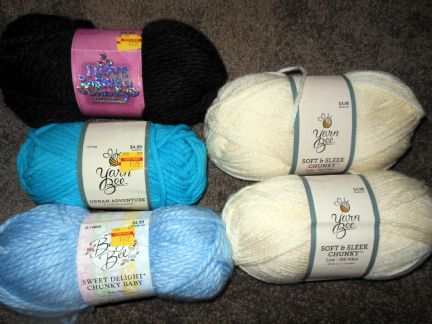 Here is what I have, Bert..do you think its worth a barter? I do. It is all labeled chunky. The brown is called called espresso and the ivory is (ha) ivory. It is all very soft to touch. (Yummy feeling!!!) I will send my address. Thanks!