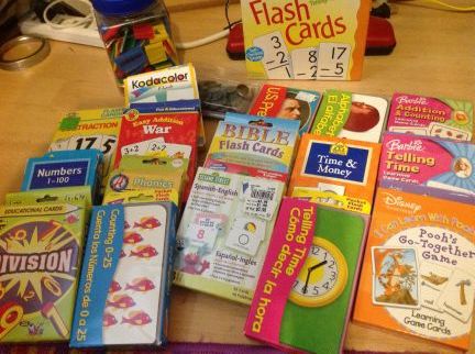 Here are some excellent homeschooling things for the early years. Flash cards for phonics, math, Spanish, time, money, also helpful games, plus coins to help children learn about money, and phonics tiles to help them create sentences. This is a nice lot.