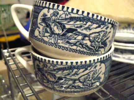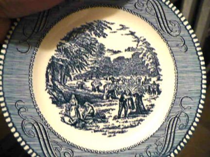 Do any of you collect Currier and Ives blue and white dishes? I have a whole set of blue and white place setting with cups, saucers, plates, etc... There are dinner plates (5), luncheon plates (6) bowls (6) mugs and saucer (5) dessert plates (6)