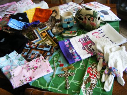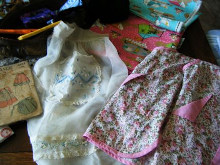 I received a box filled to the Brim with fabric, aprons, patterns and fun...