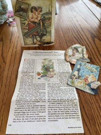 Oh Jill the ATC’s arrived today, thank you sooooooo much I love them. I have been collecting sea glass for years, they are so special. I have not found any yet in this area of the Pacific, but I will. I did not know that they are called mermaid tears, thank you for sending along the write up about them. It has been a sad day for me and your package made me happy, so thank you Farmgirl Sister. Thank you again Dianna for yet another great ATC shop.