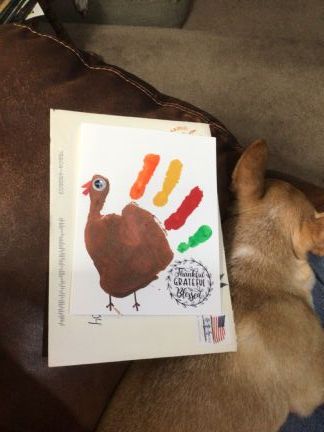 Thank you Krista, I received your cute sweet card today. Sure made my day. Love that little hand print. Please tell Bexten thank you from me for helping makei this cute card. Love it.