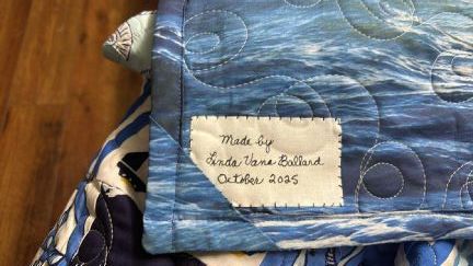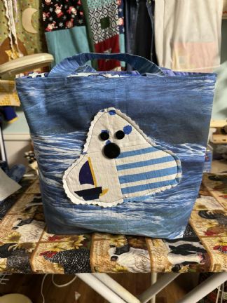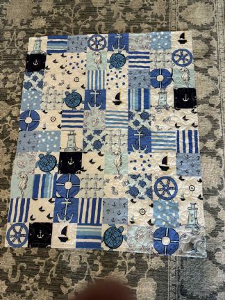 I wanted to share with all of you the Beautiful Baby Quilt that Linda Ballard made for me to give to my Great Nephew Wally for his 2nd Birthday in November 23rd. I had ask her if she would make the quilt for me as she had already made one for her grandson. She said yes and gave me the colors for the fabric and how much I would need. I chose a blue and other colors Nautical theme fabric for the top and like a blue and white wavy pattern for the back. You see Wally and his family love the beach and the water. Wally just loves being in the water so I thought the fabric I chose was perfect so did Linda. So here is the finished quilt and matching bag Linda surprised me with to hold his quilt and book for travel. Also Wally and his Mom can play the game I Spy as Wally can pick out the different figures. Linda thought of that. Anyway I love the quilt and cannot wait for it to arrive so I can see it in person. Then send it off to My Wally Boy for his Birthday:-)Thank you so much Linda for the Beautiful Quilt and Bag, they are Amazing and I know Wally will love it.