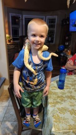 We recently visited some family friends who have a pet snake. Bexten was very interested in the snake and kept asking to hold it. This little guy of mine is very brave and really enjoyed his experience. We have noticed he has no fear of anything. That is why I call him my feral child. Now he wants his own snake, but that is a no go for my house lol!
