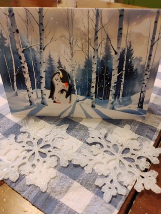 I'm sure some of my cards are at the post office, no mail all week. Most likely none until Monday..Our street and the next street to the main hwy is ice, just started to melt today, but it's 4 inches thick. We just lose power so far, so thankful for that!! Connie Sue |