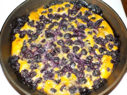 Using 8" cast iron skillet Preheat oven to 400 degrees F. butter skillet Add 2 1/2 cups blueberries For bakeover: 1/2 cup milk 2 eggs 3/4 tsp vanilla 6 TBS bakover mix
